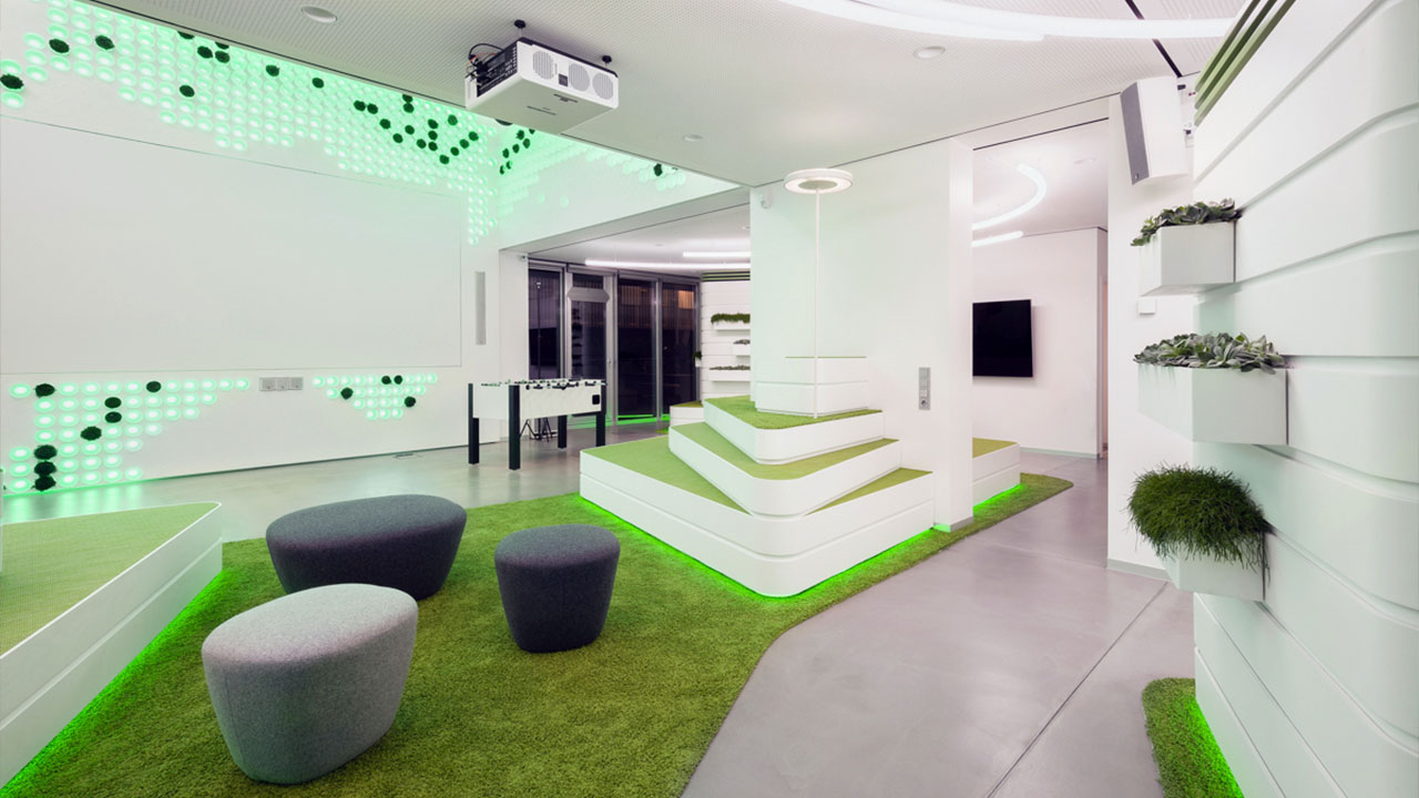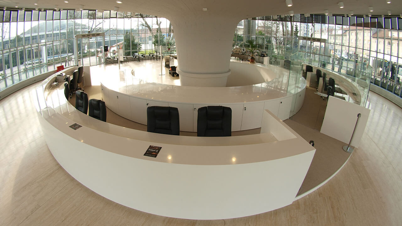 Poslovni prostori, ki vplivajo na vaše stranke. Njihov prvi stik z vašim podjetjem naredi vtis. Drzne oblike prepričljivih barv in toplina dotika. Sporočilo, ki pravi, da ste napredni in podjetni.